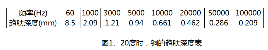 对于50Hz的工频交流电,导体为铜,其趋肤深度约8mm,这样对于厚度大于16的铜线,其中心处电流密度非常小,因此用于传输工频电流的铜线厚度一般小于12mm。