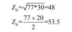 两者之间的算术平均值是53.5欧姆,几何平均值是48欧姆。