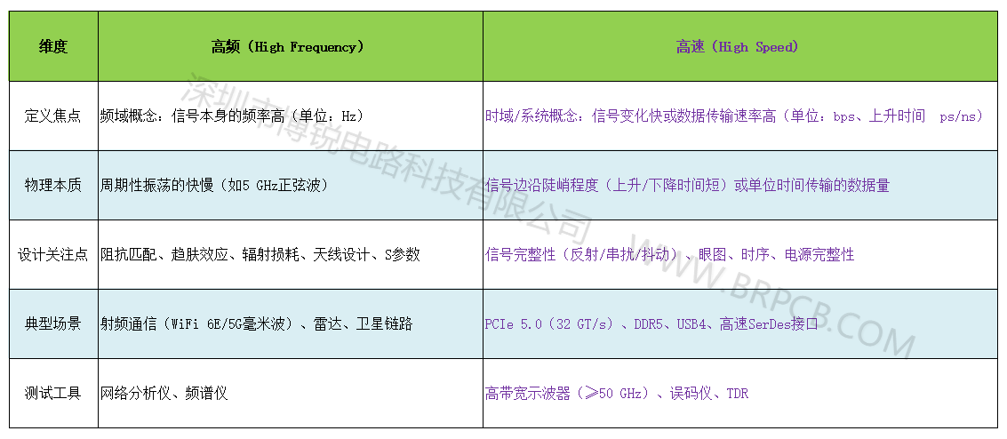 高频与高速的根本区别在于描述的信号属性不同: