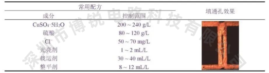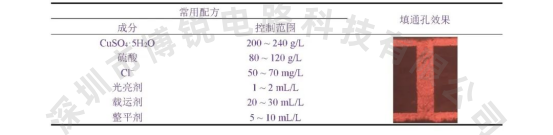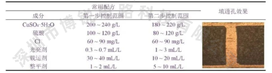 如果介质层厚度在0.38 mm及以上,采用脉冲电镀两步法的填通孔效果较好、更可靠,适用于做精细线路,但对设备和添加剂的要求较高。